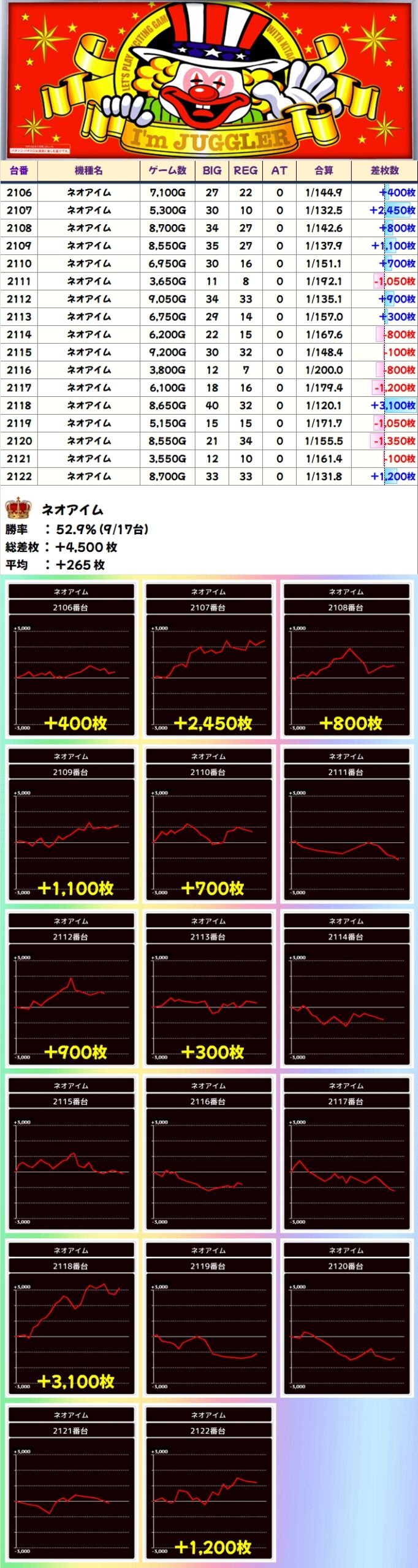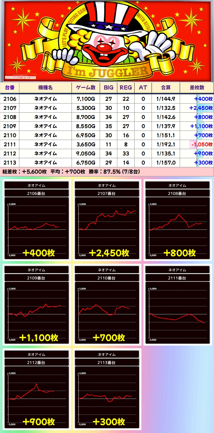 【1/2系濃厚】ネオアイム(9/17台+)→平均+265枚