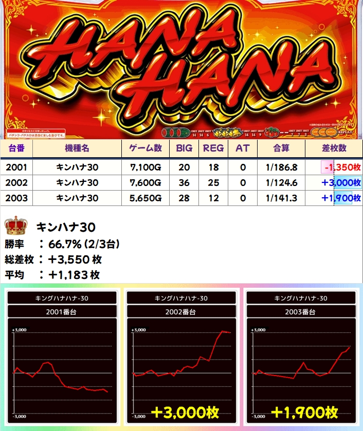 【全台系濃厚】キンハナ30(2/3台+)→平均+1,183枚