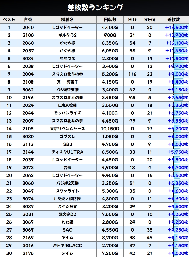 出玉ランキングTOP30