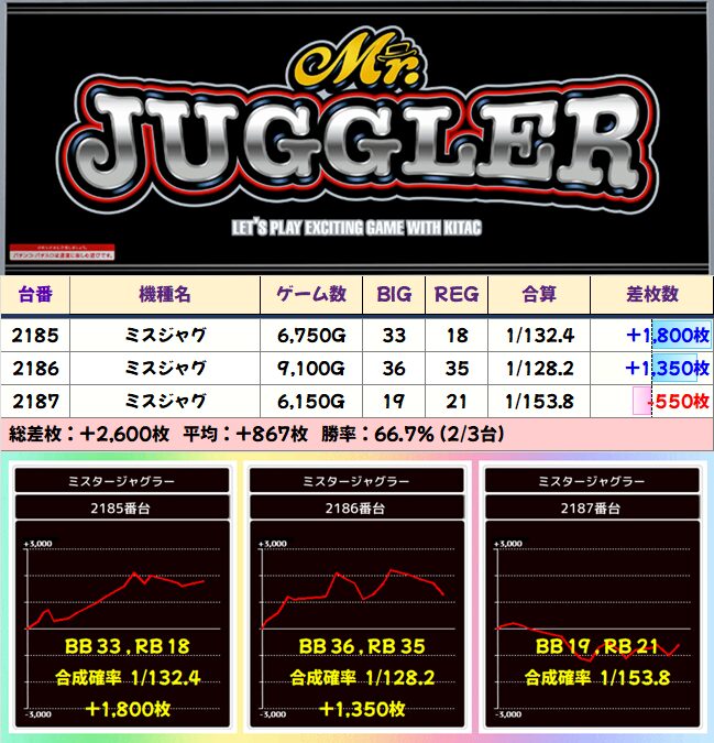 1/2系:ミスジャグ 平均+867枚