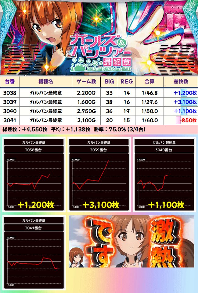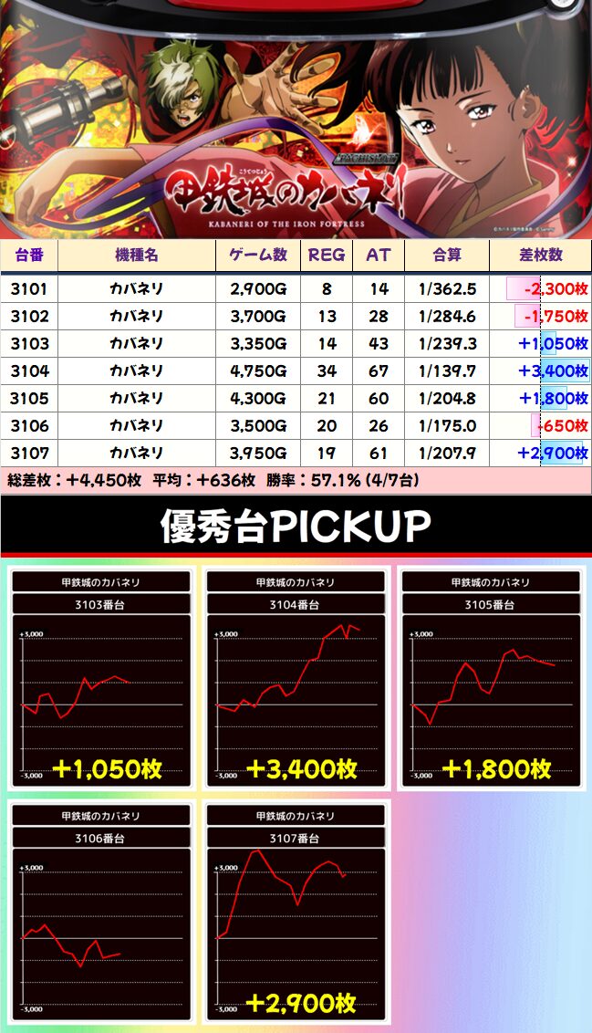 先週の段階でも+10万枚overを達成しており、日曜日では総差枚で10万枚をこえることがめずらしくあありません。さらに今月は周年月間なので、いつも以上に気合が入ってくること確実です。
