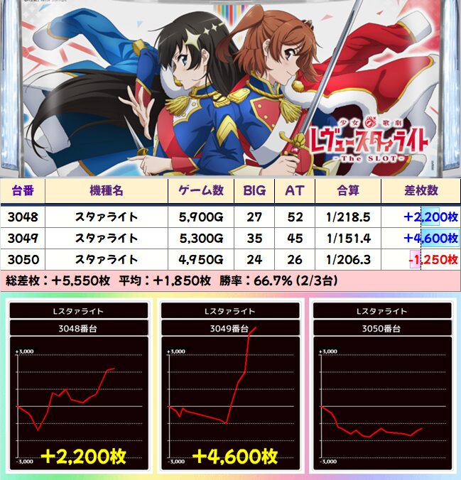 1/2系:スタァライト 平均+1850枚