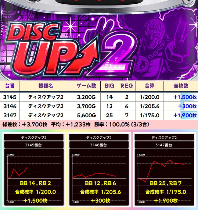 1/2系:ディスクアップ2 平均+1233枚