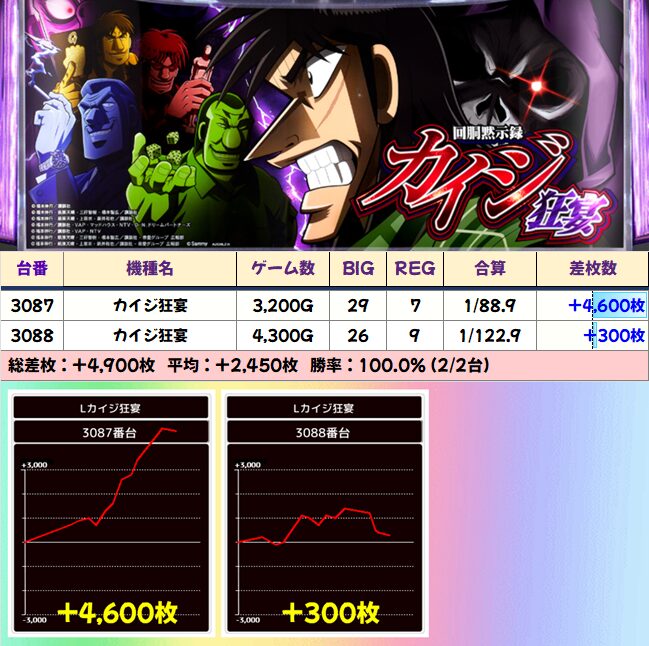 1/2系:カイジ狂宴 平均+2450枚