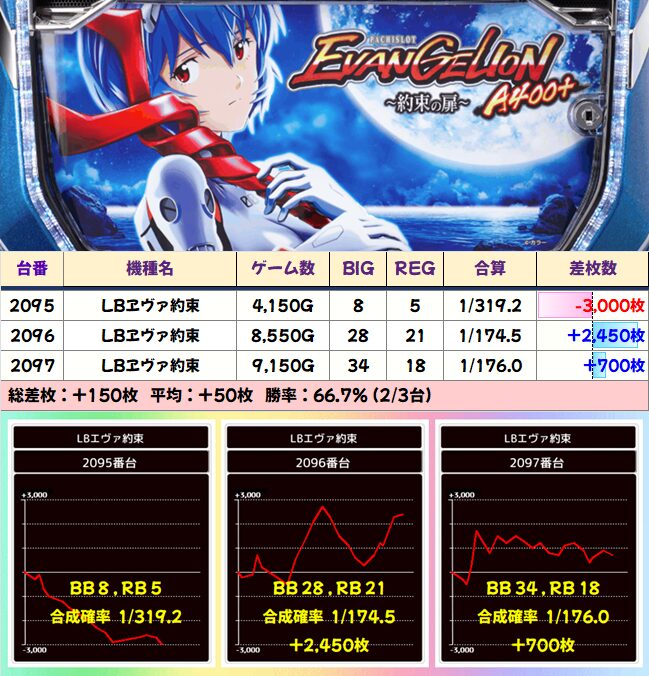 伸ばせず着地した台と、伸ばし続けて大台にのった台。BIGとREGだけみたらそこまで大した差はないのに展開が天と地の差。