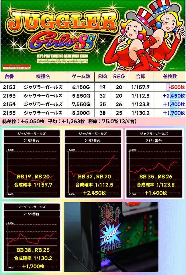 全台系:ジャグラーガールズ 平均+1263枚