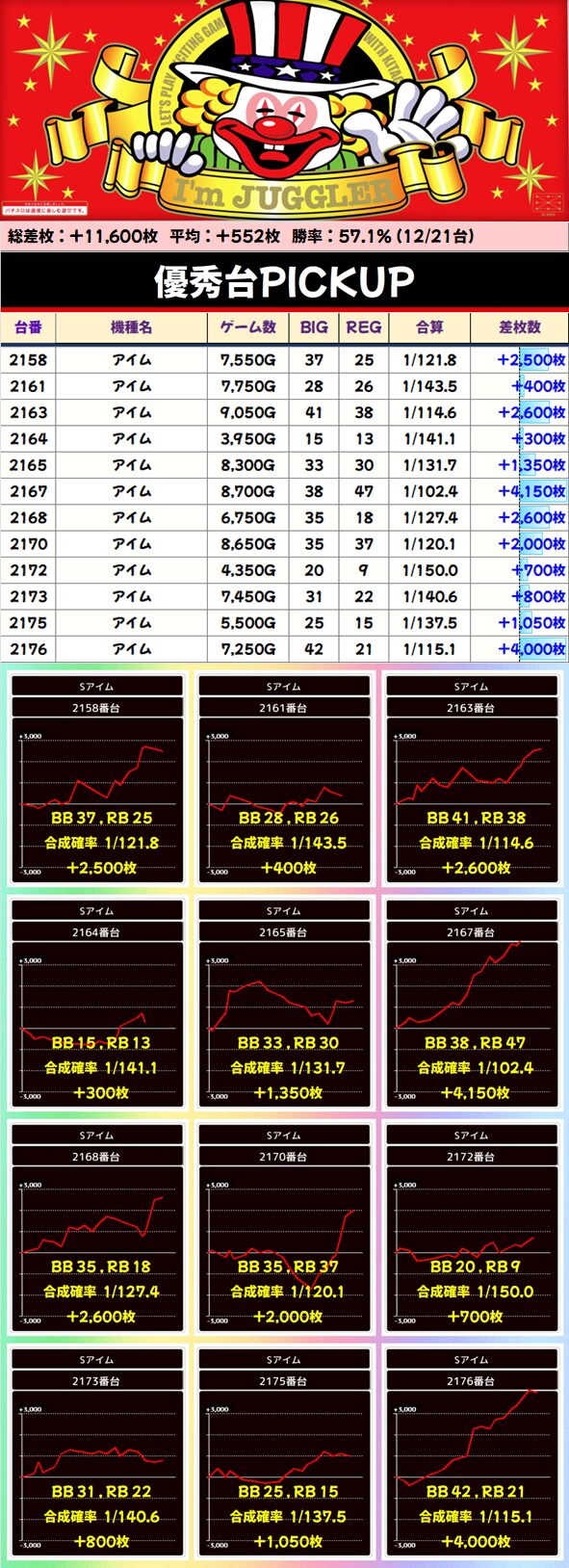 1/2系:アイム 平均+552枚