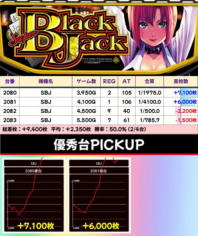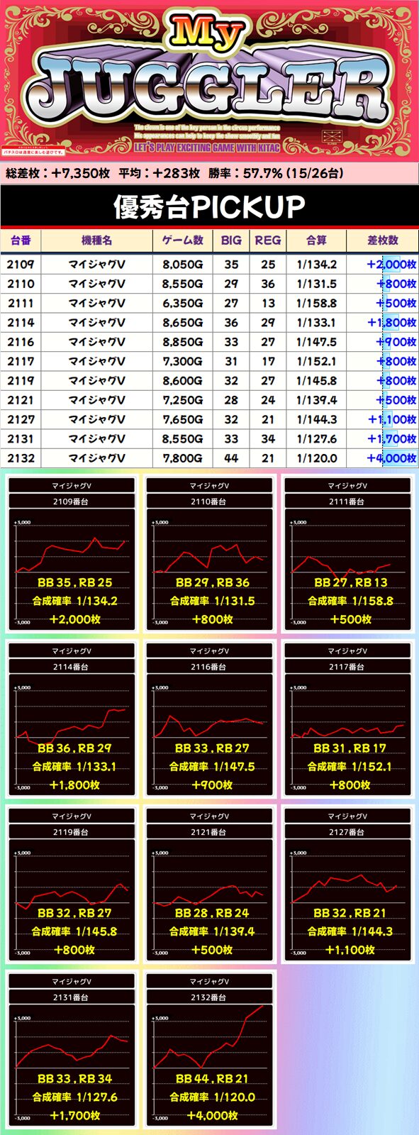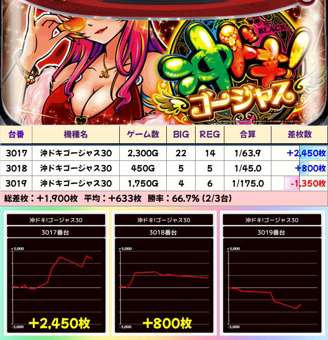 6000枚を超えている2台はどちらも初当り(というかREG)が少ないですね。初当りのBIGによるRC高確の獲得がかなり速いということですが…ここに設定差があるのか?