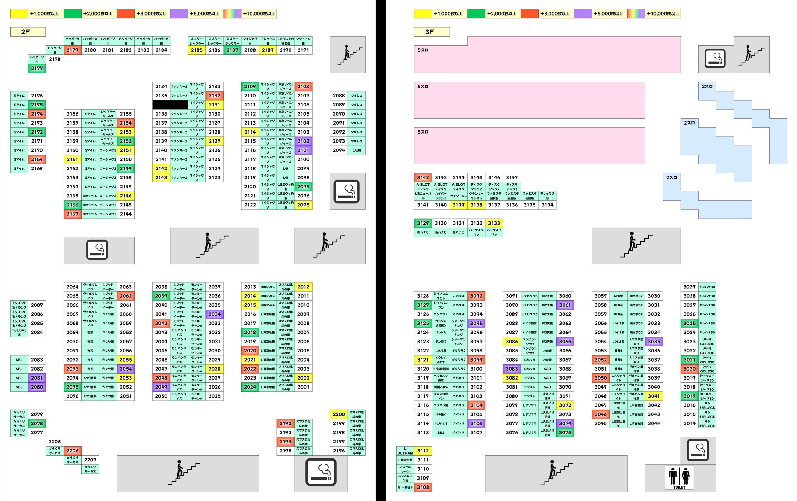 1/2系と思わしき機種を下記に並べています。今回は単品での出玉がそれぞれの機種に多いイメージがあったので散りばめてきたのでしょうか…?3Fの単品優秀台がかなり多い印象です。