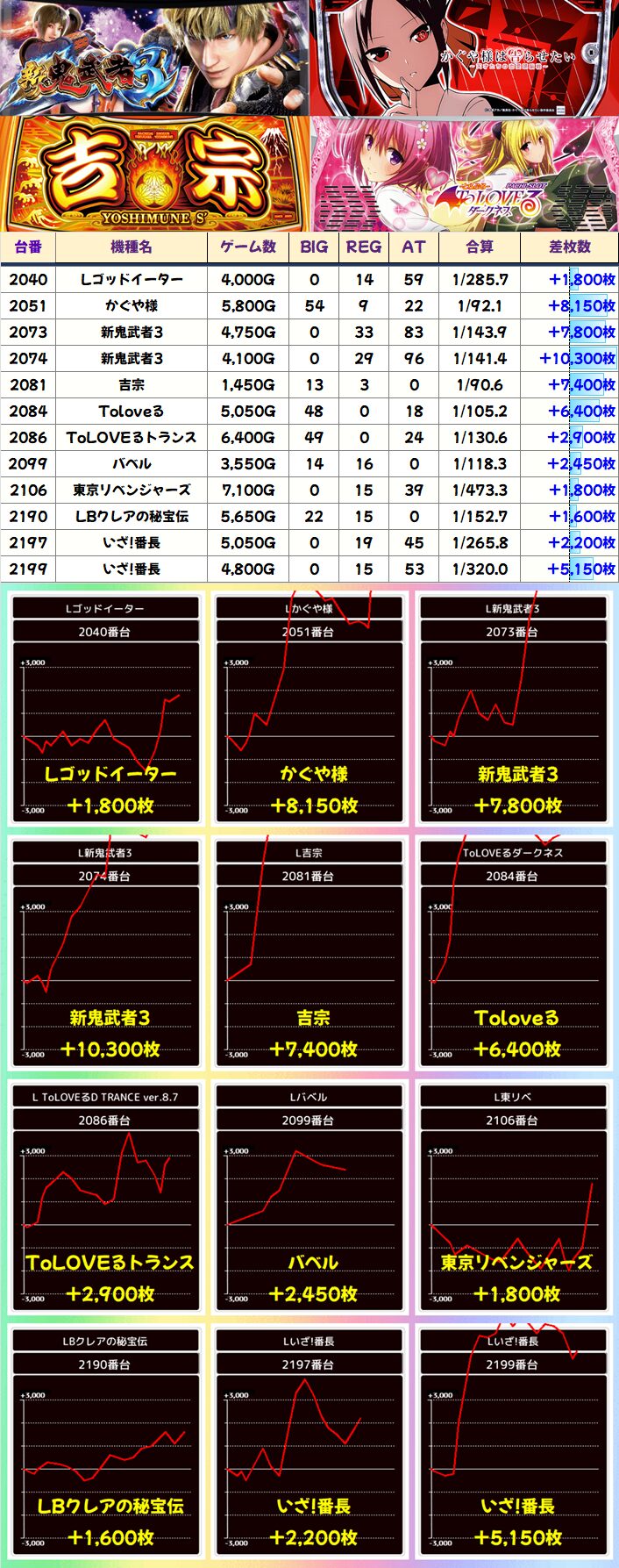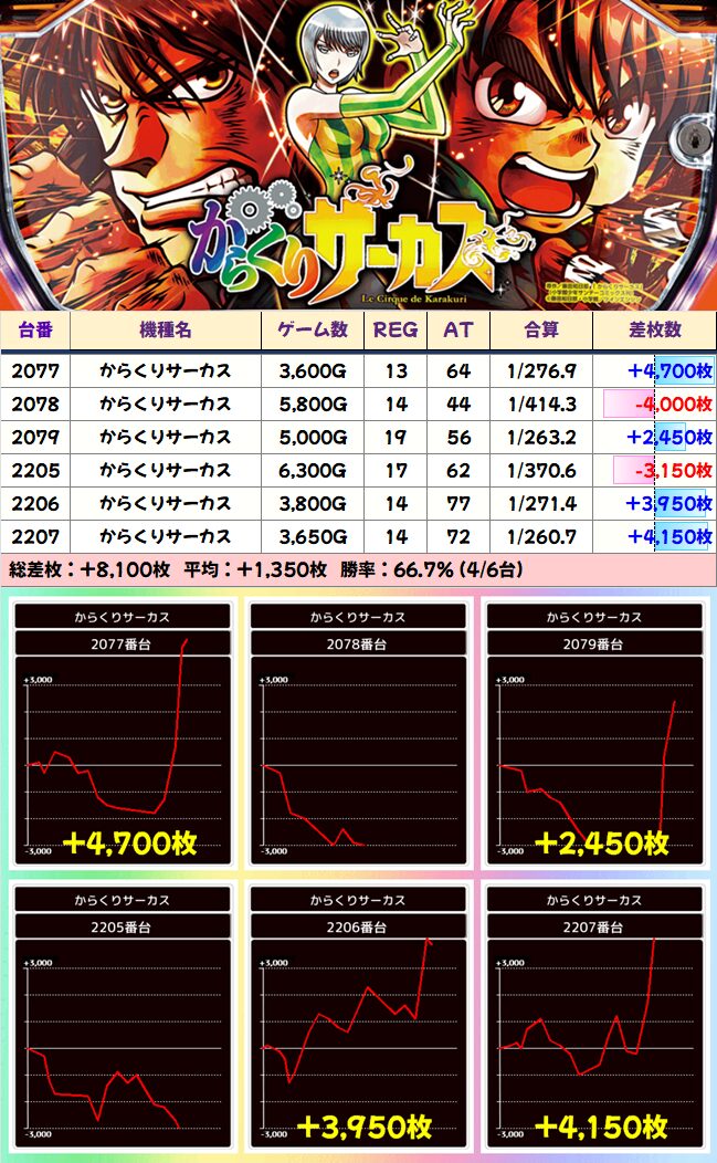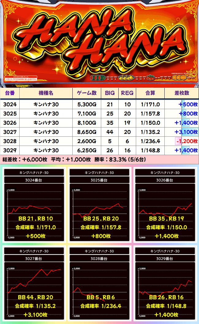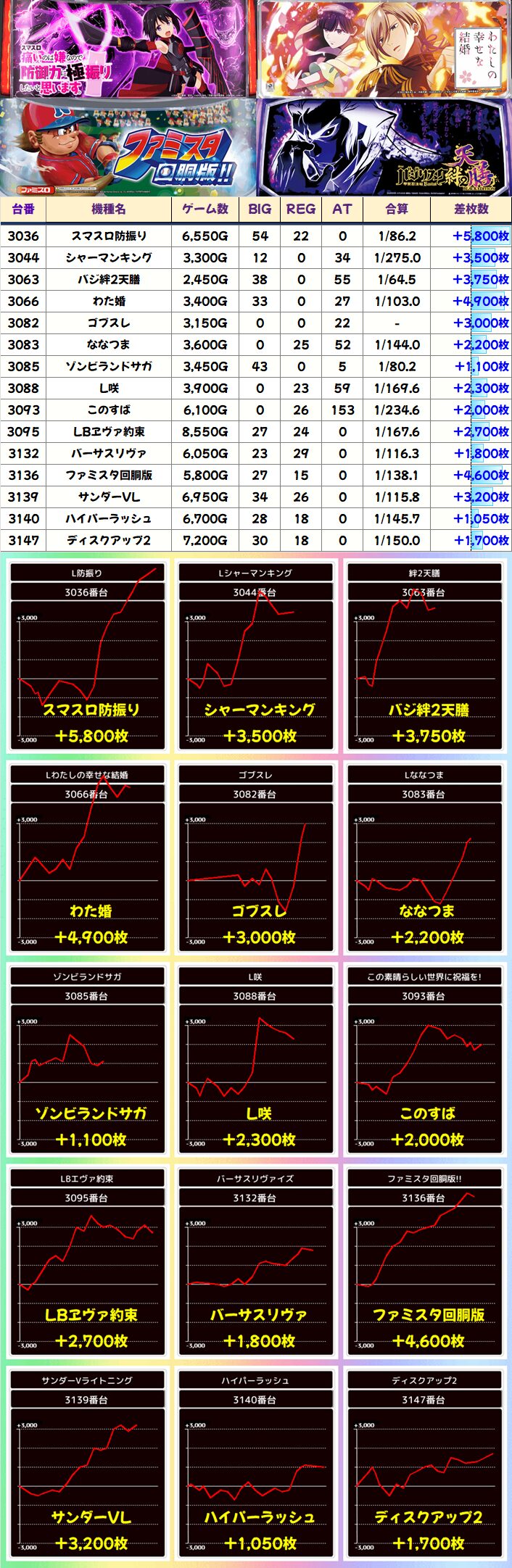 序盤で塊をとって楽な展開もあれば、凹んだ分を最後に取り返すものもあり、最後はしっかり全台プラス。やはり甘い。