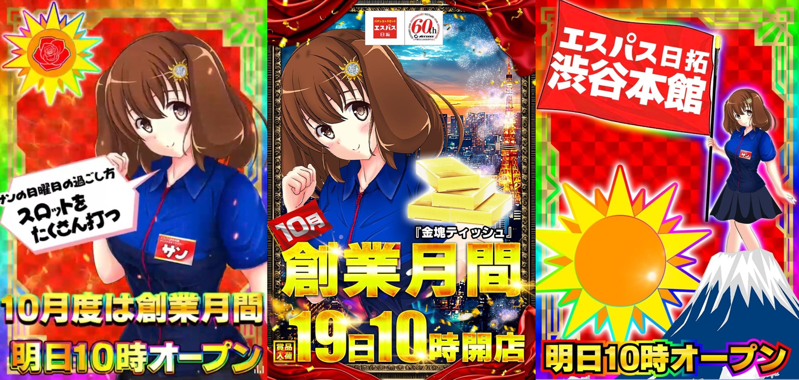 10月はエスパスグループの創業月間。そして渋谷本館の本命特定日である日曜日。これまでの日曜日はその創業月間に相応しい優秀な成績を連続でたたき出しており、今回も期待できることは間違いないでしょう!ギルドの事前ポストは下記の通りです。