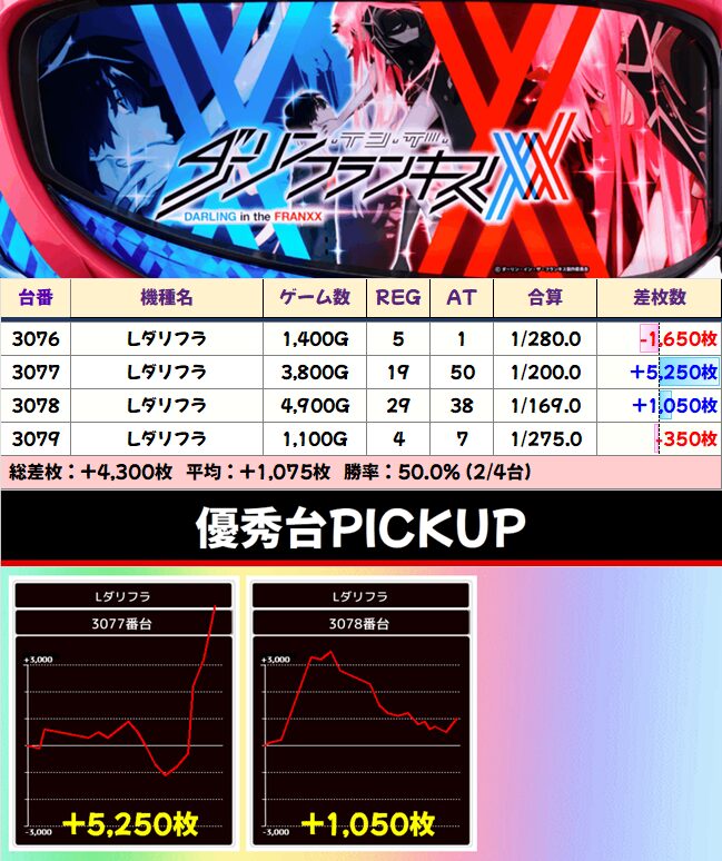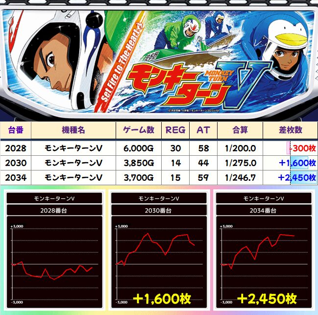 3077番台は中盤までST中伸ばせず、そこからマイナス域になるも、最後に形勢逆転。おそらくMAXX到達からの逆転劇でしょう。