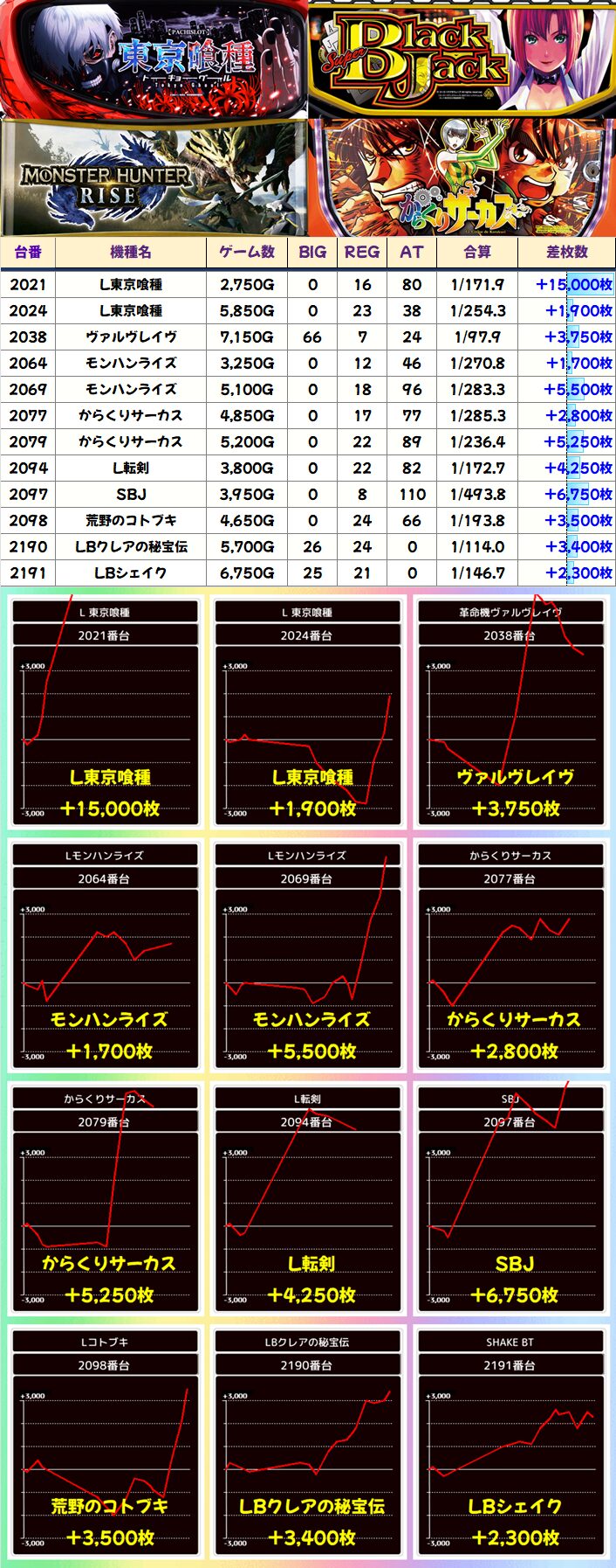 これで創業月間の日曜は終わりですが、そもそもエスパス渋谷本館の日曜日は強いので、11月も積極的に狙っていきたいところ。次は3連休の中日となるので、大いに期待しましょう!