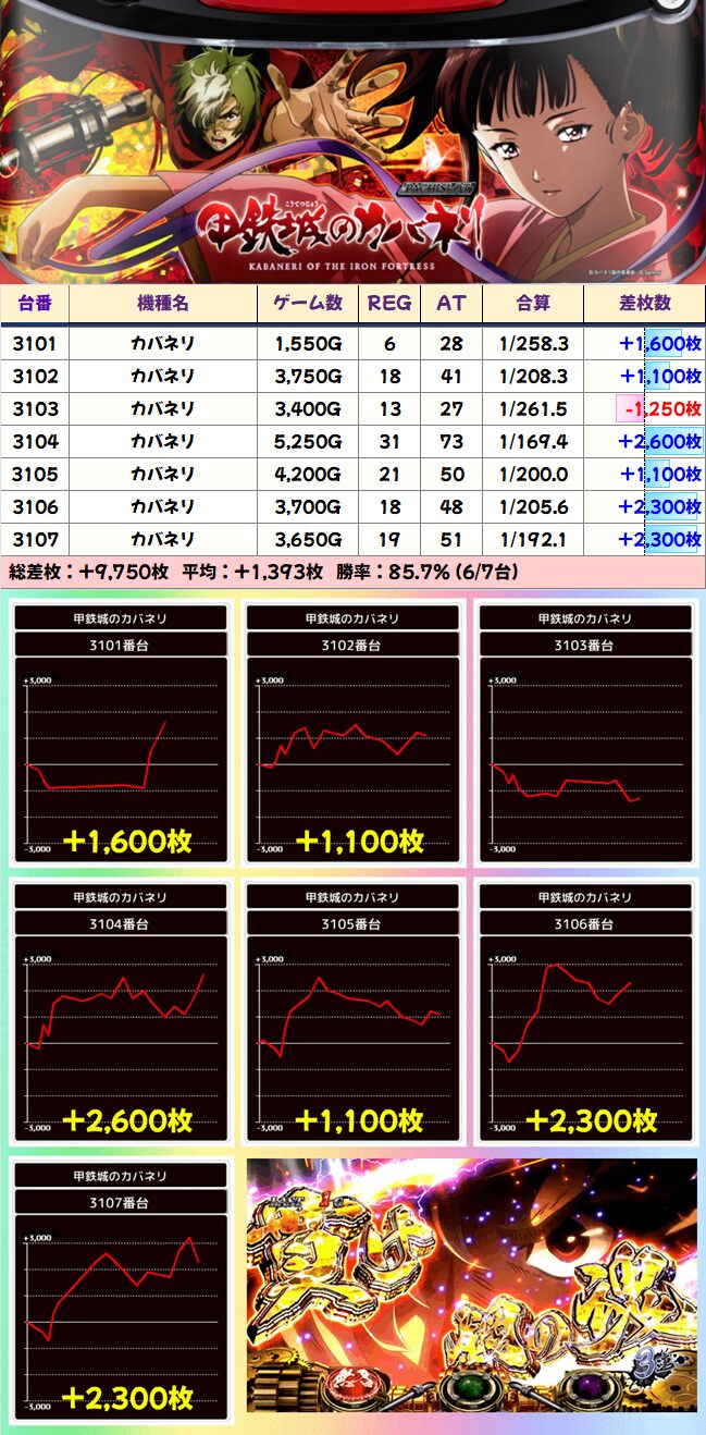 スマスロ炎炎とゴールデンカムイに挟まれた、この台も良好な出玉あり。この9台もしや狙って仕掛けられた可能性もある…?