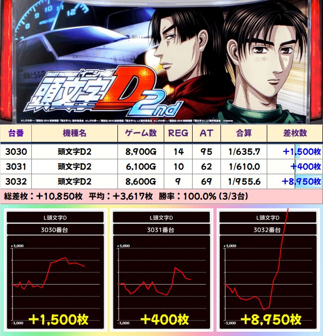 無想転生できた台は一気に伸ばしておき、それができないとジワジワと伸ばすか、厳しい戦いになりがち…それを物語るようなグラフが並んでますね。