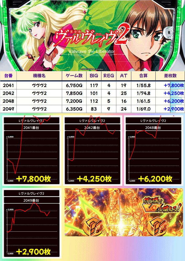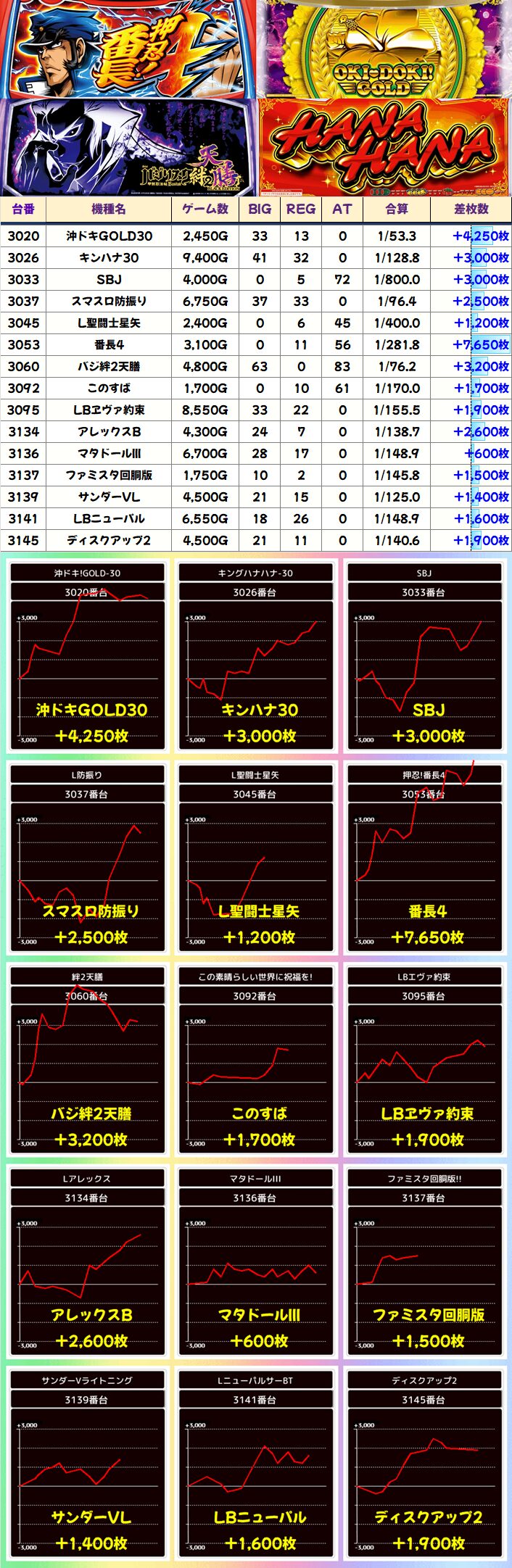 だいぶ派手な出玉が飛び交っていた3Fですが、単品でも優秀な出玉あります。サンダーVLいまだ健在、ニューパルBTもしっかり結果を残してますね。