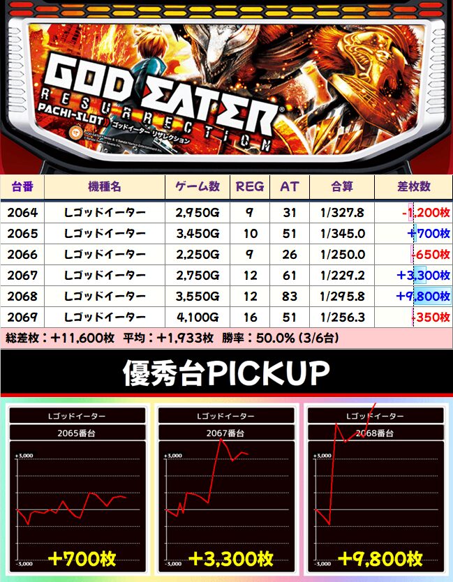 ゴッドイーター2Fだけでなく3Fのバラエティにも設置されているんですが、そちらの方もなにやら派手な出玉に……そこも含めてのオススメでしょうか?