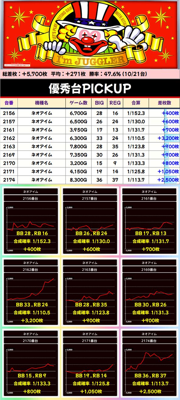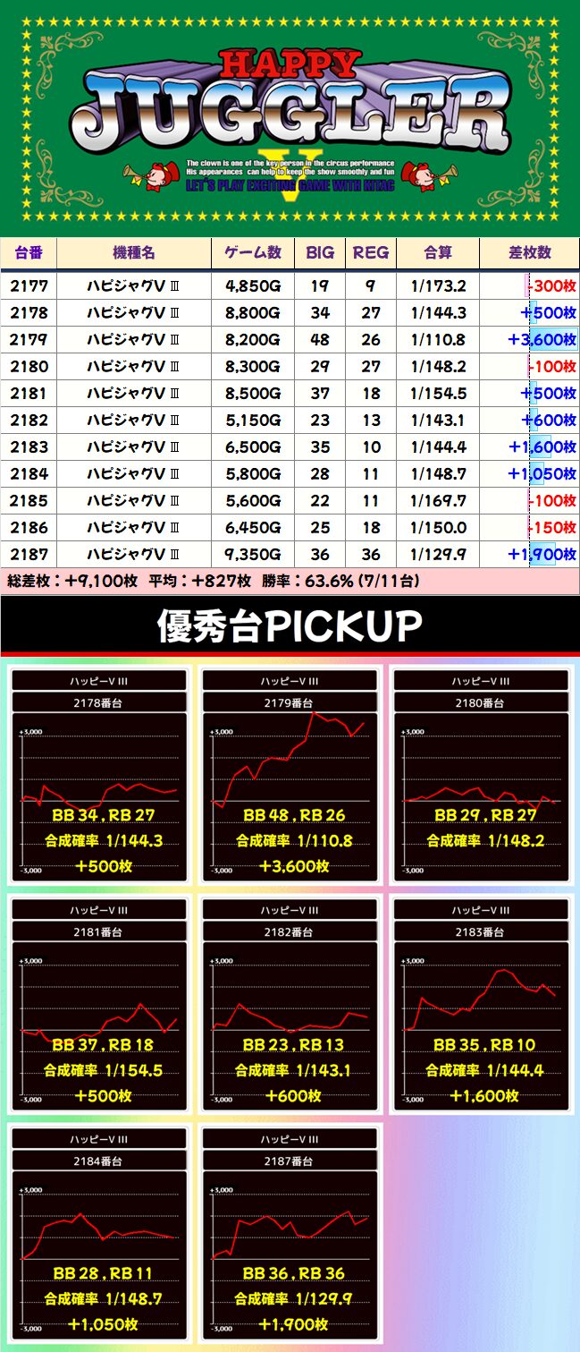 7300Gという粘りをみせた2107番台。やはりオススメ機種だけあって配分は悪くなさそうです。