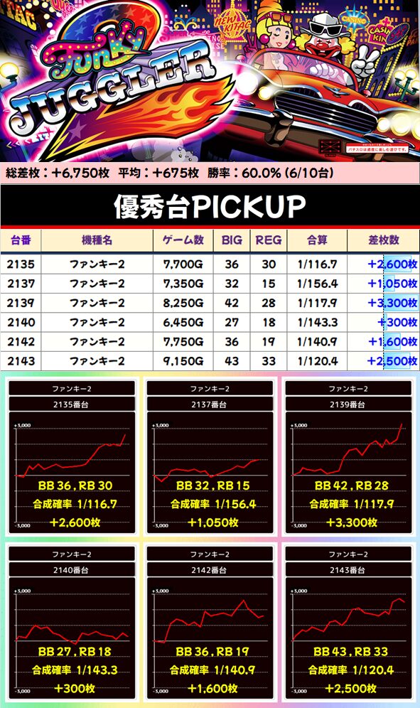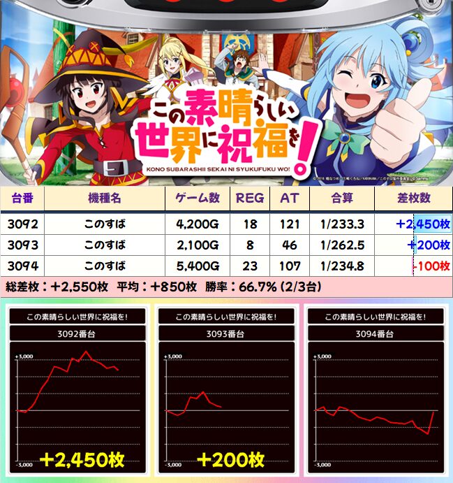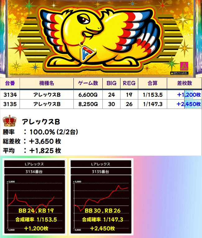 元々が甘いゆえに1/2系が全台系にみえた可能性もありそうですが、やはりBIG351枚の安定ぶりはかなり強いですね!