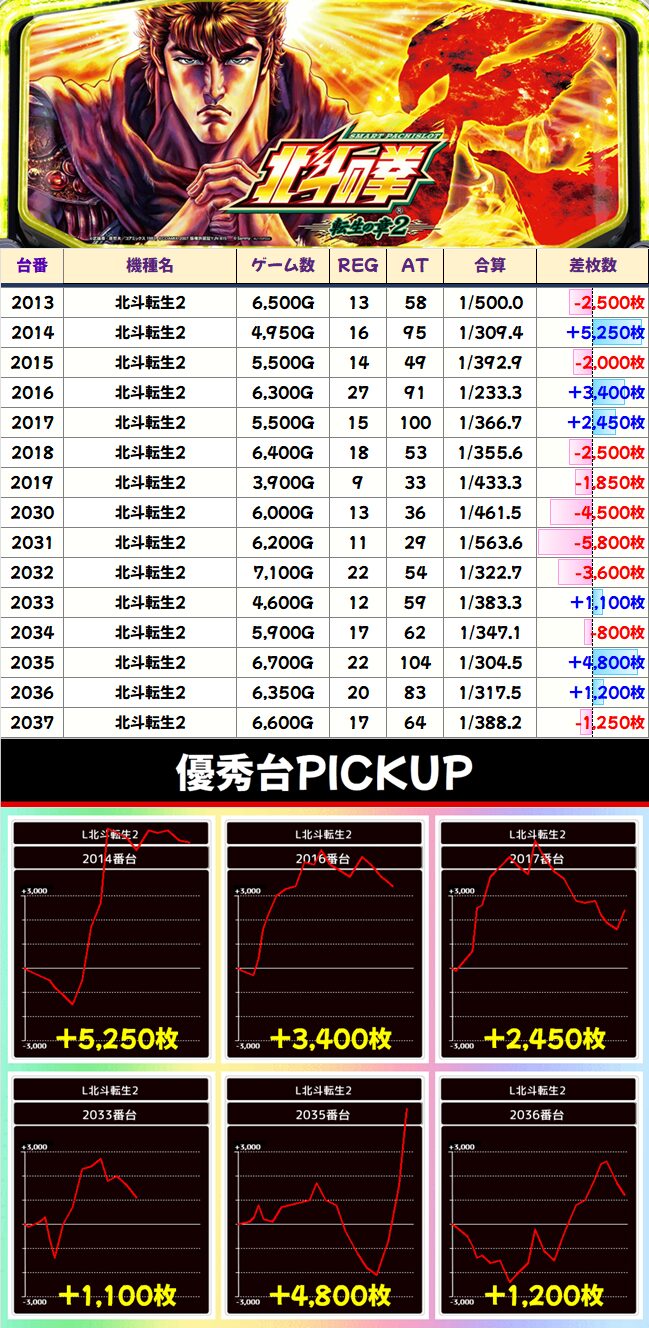 万枚を達成した台はREG16回、+200枚の台はREG19回。おそらく初当りは引けているものの、ST中の展開で出玉が天と地の差にわかれたか?