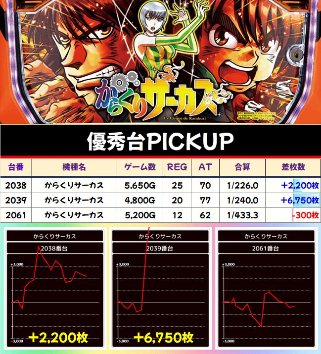 「トラブル」の単語が機種示唆をと思われます。下のほうだと吸い込みがすごいこの台でプラス差枚が3台もあるのは優秀では?