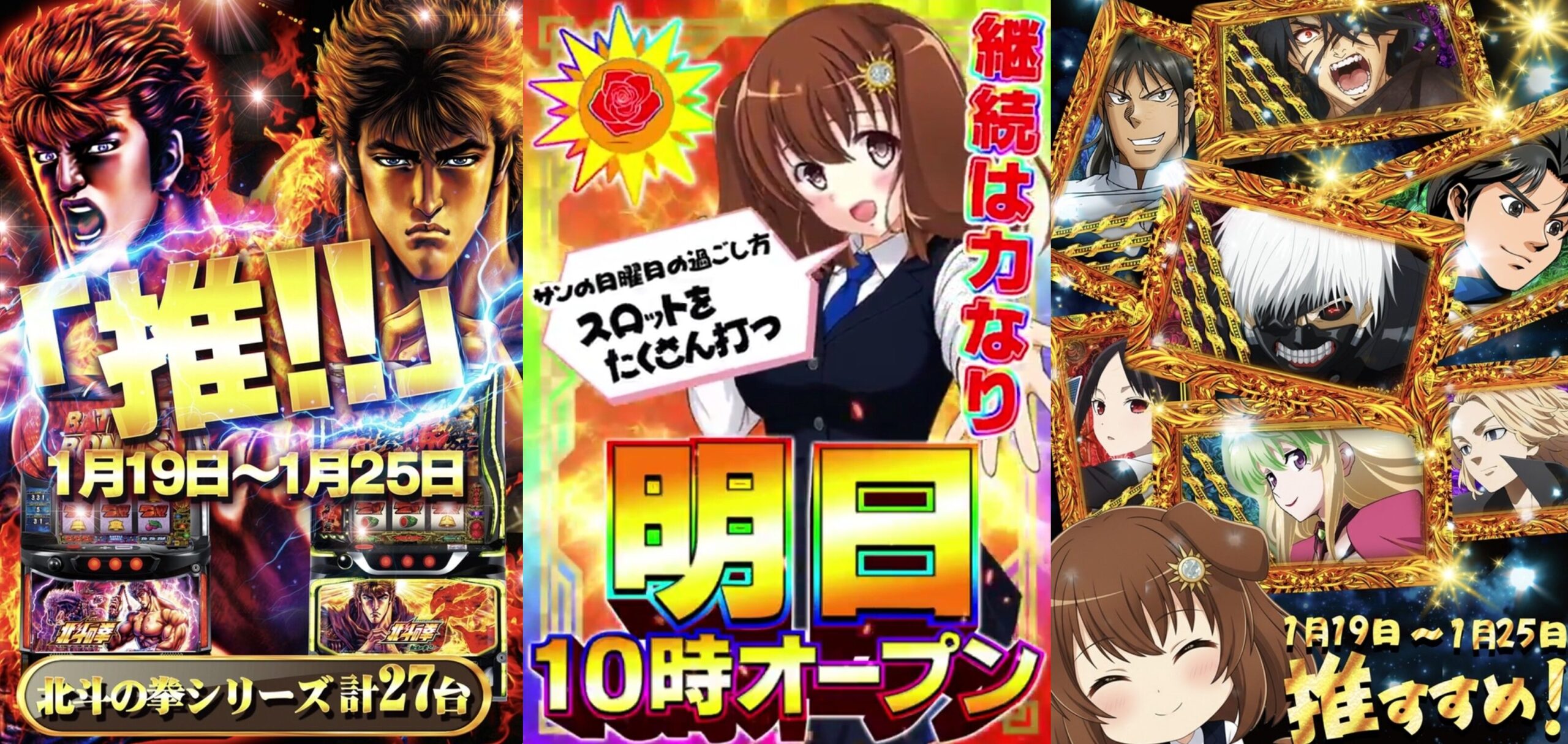 全23台設置のネオアイムが全台系濃厚です。ミスジャグがまだ全台系がない状態で一週間が終わっていますが、何やら1/26に向けたサンちゃんポストでエクストラらしき告知が…?(後述)