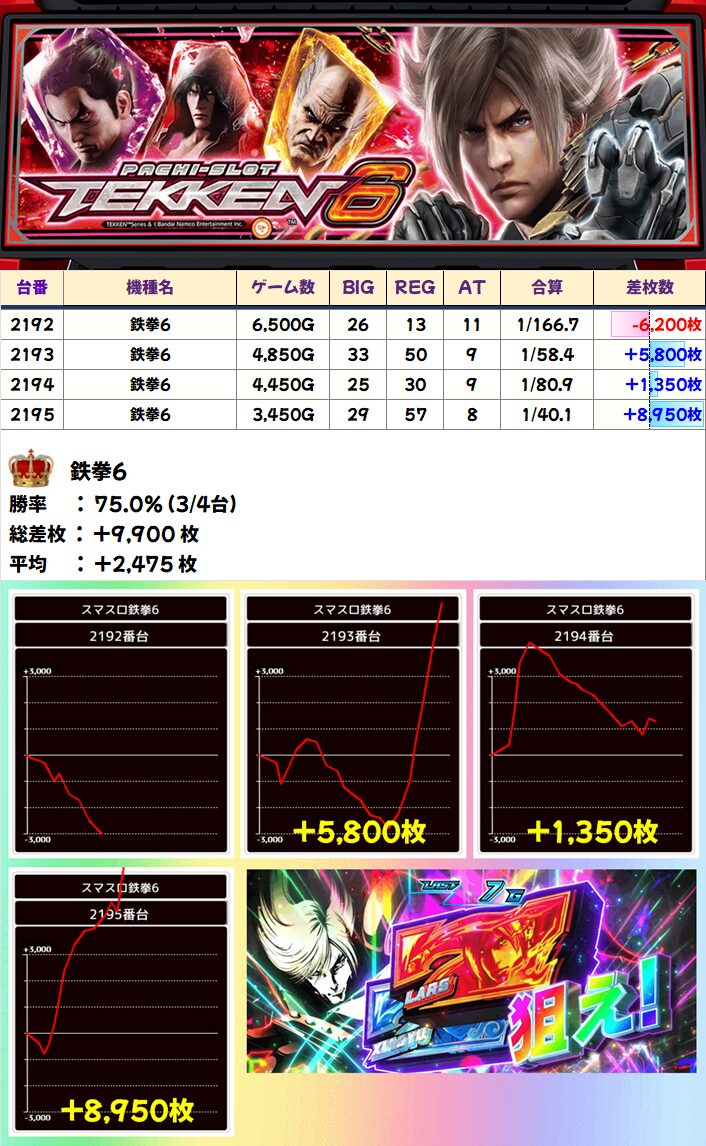 全台系:鉄拳6 平均+2475枚