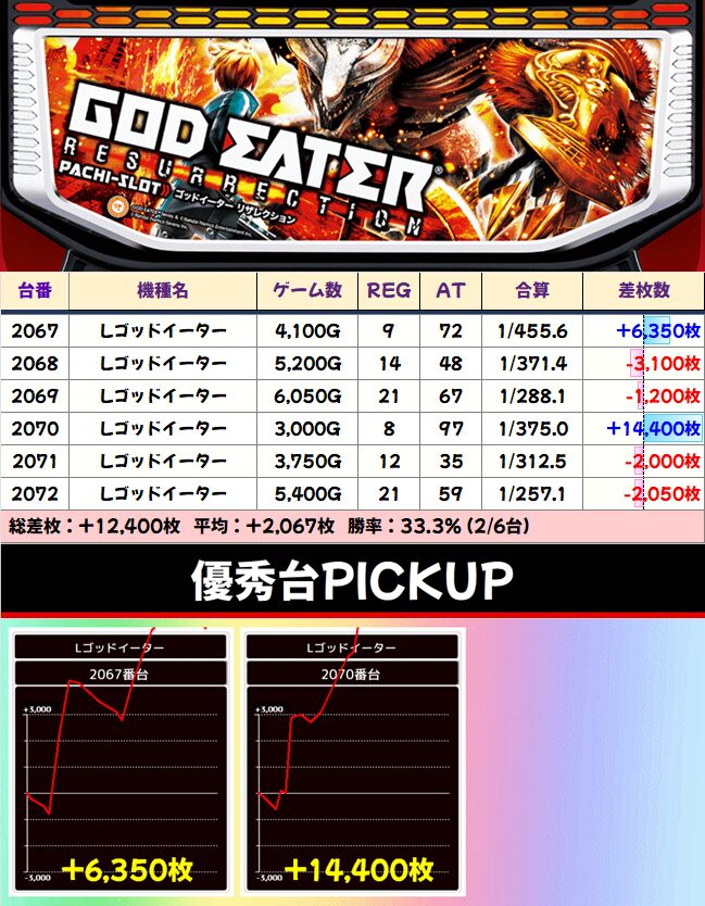 高配分:ゴッドイーター 平均+2067枚
