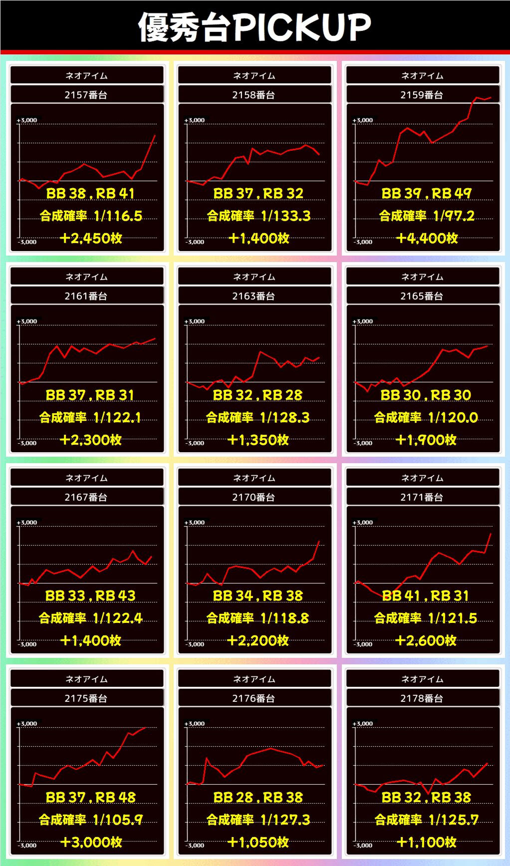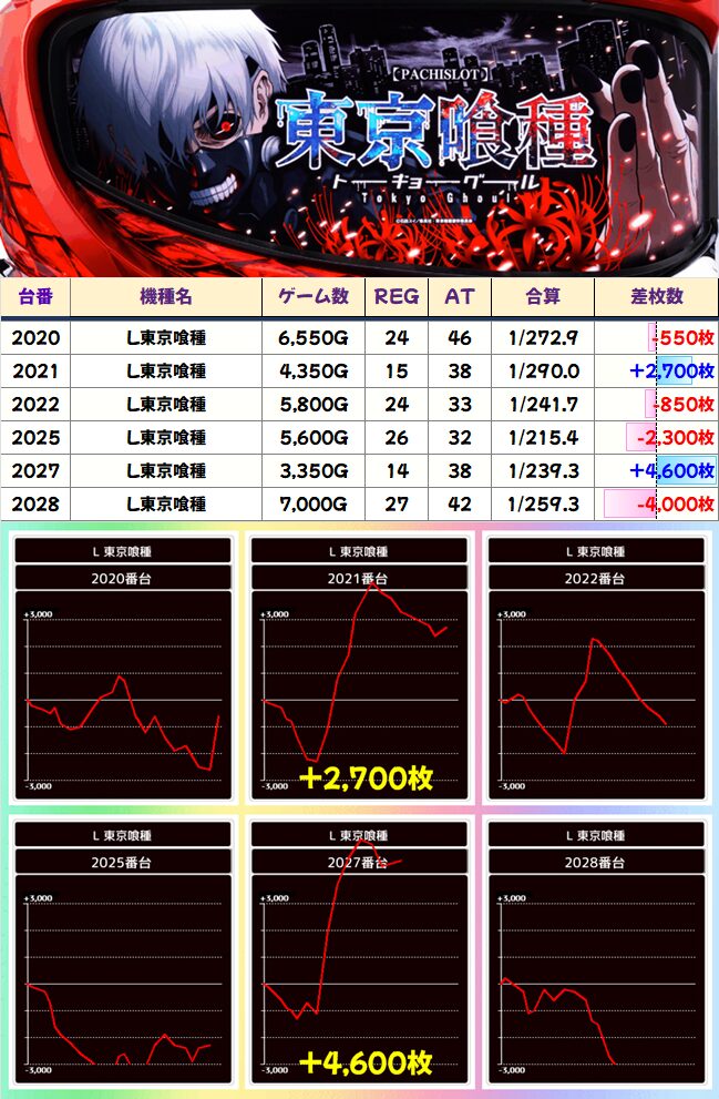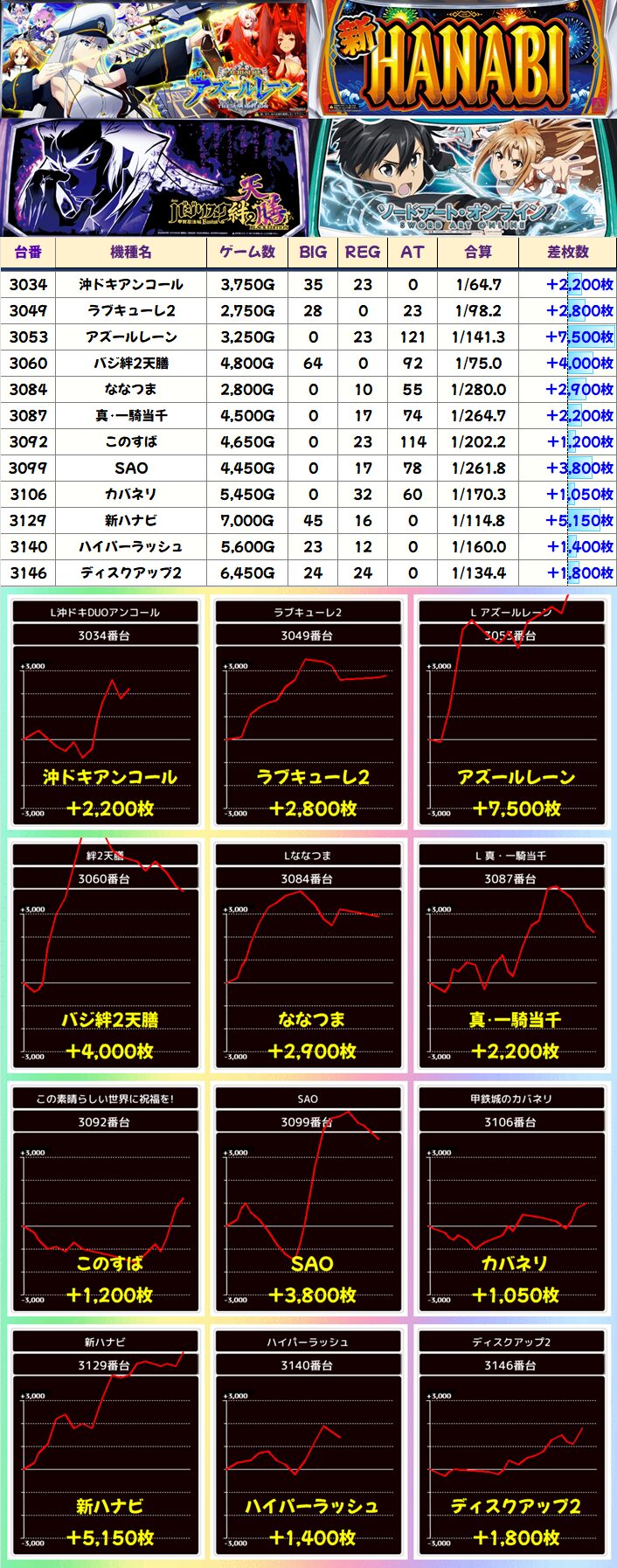 今回まとめていくと、強かったのは2Fのメイン機種関連です。2F・ジャグ・3Fでカテゴリ別にまとめておりますが、2Fに高配分と思われる機種が多いまとめ結果となりました!
