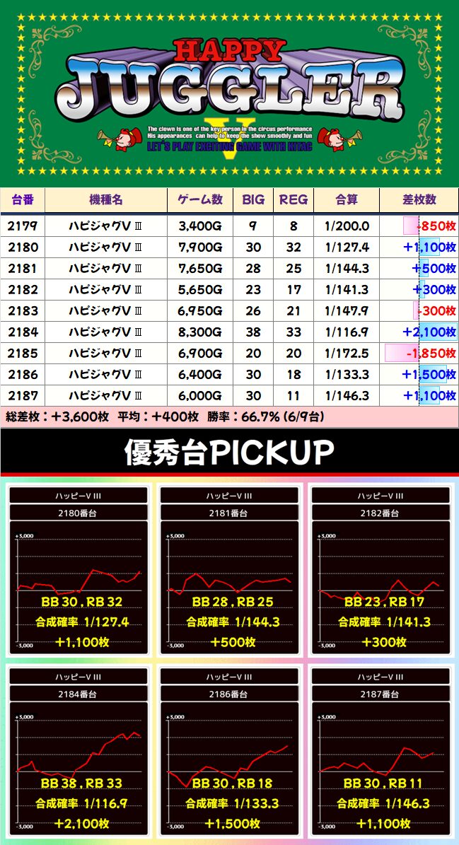 1/2系:ハピジャグ 平均+400枚