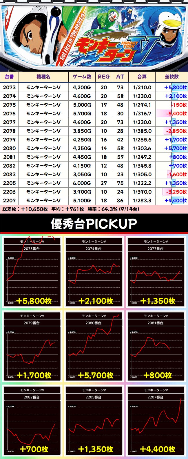 オススメ台の筆頭ともいえるモンキーV。先日、新情報も出てきたらしいので今後も立ち回りの軸となることは確実か。