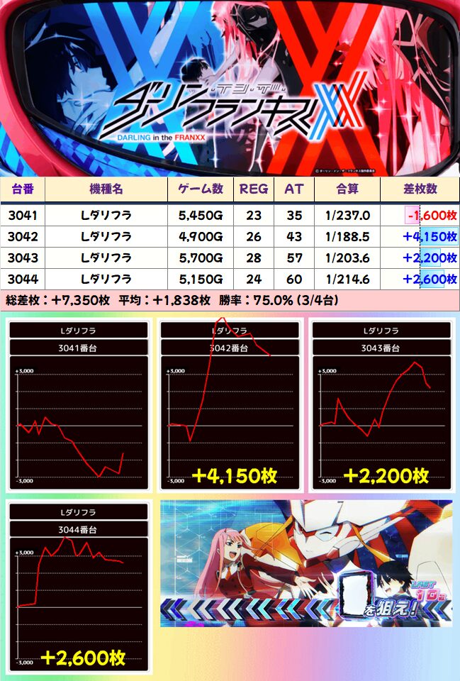 1/2系:ダリフラ 平均+1838枚