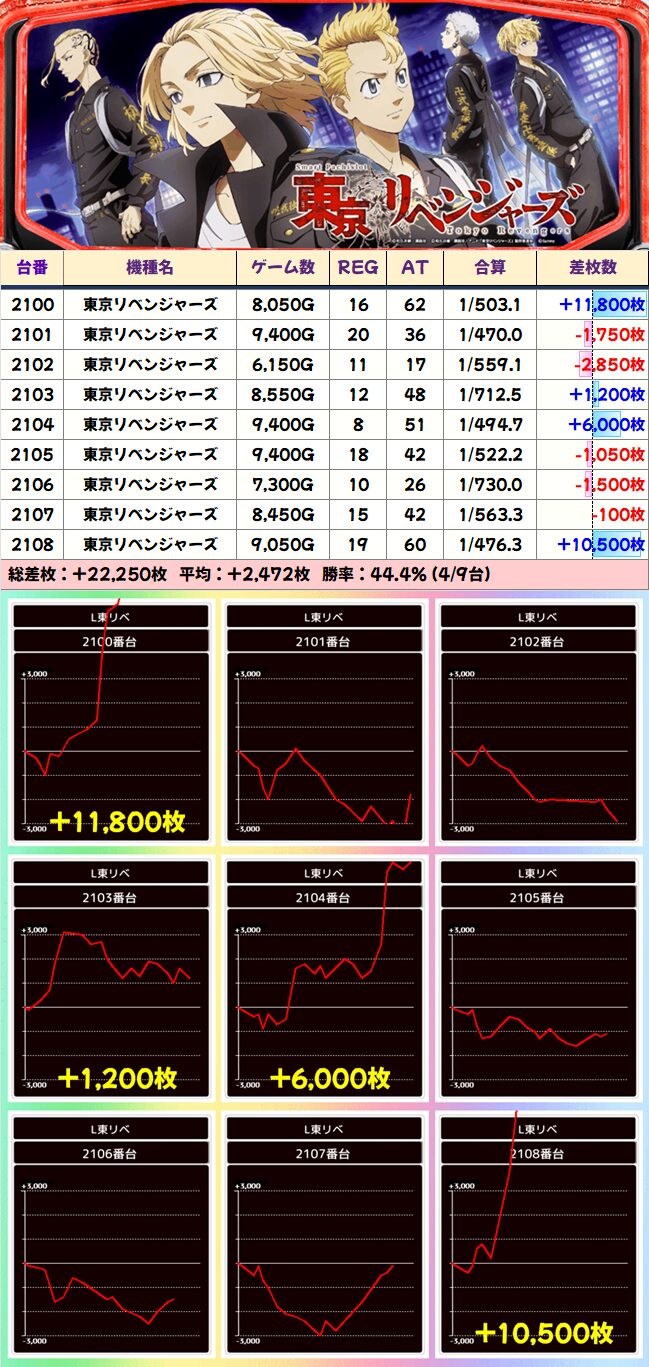 1/2系:東京リベンジャーズ 平均+2472枚