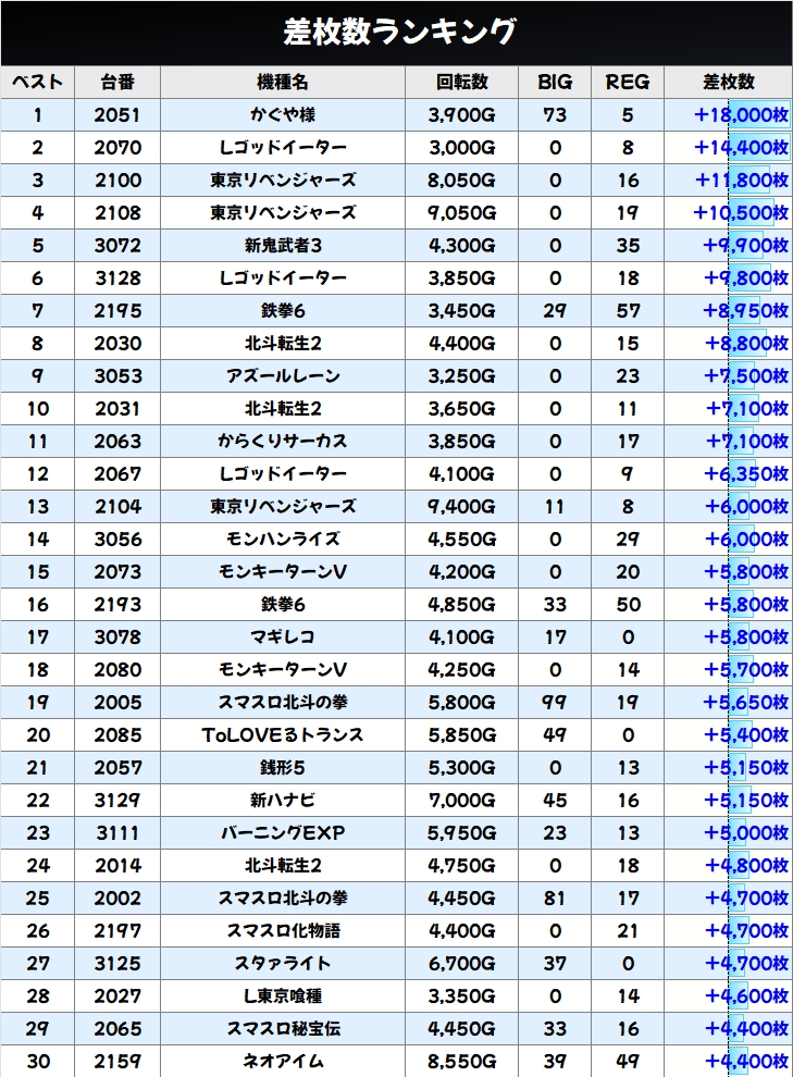 出玉ランキングTOP30