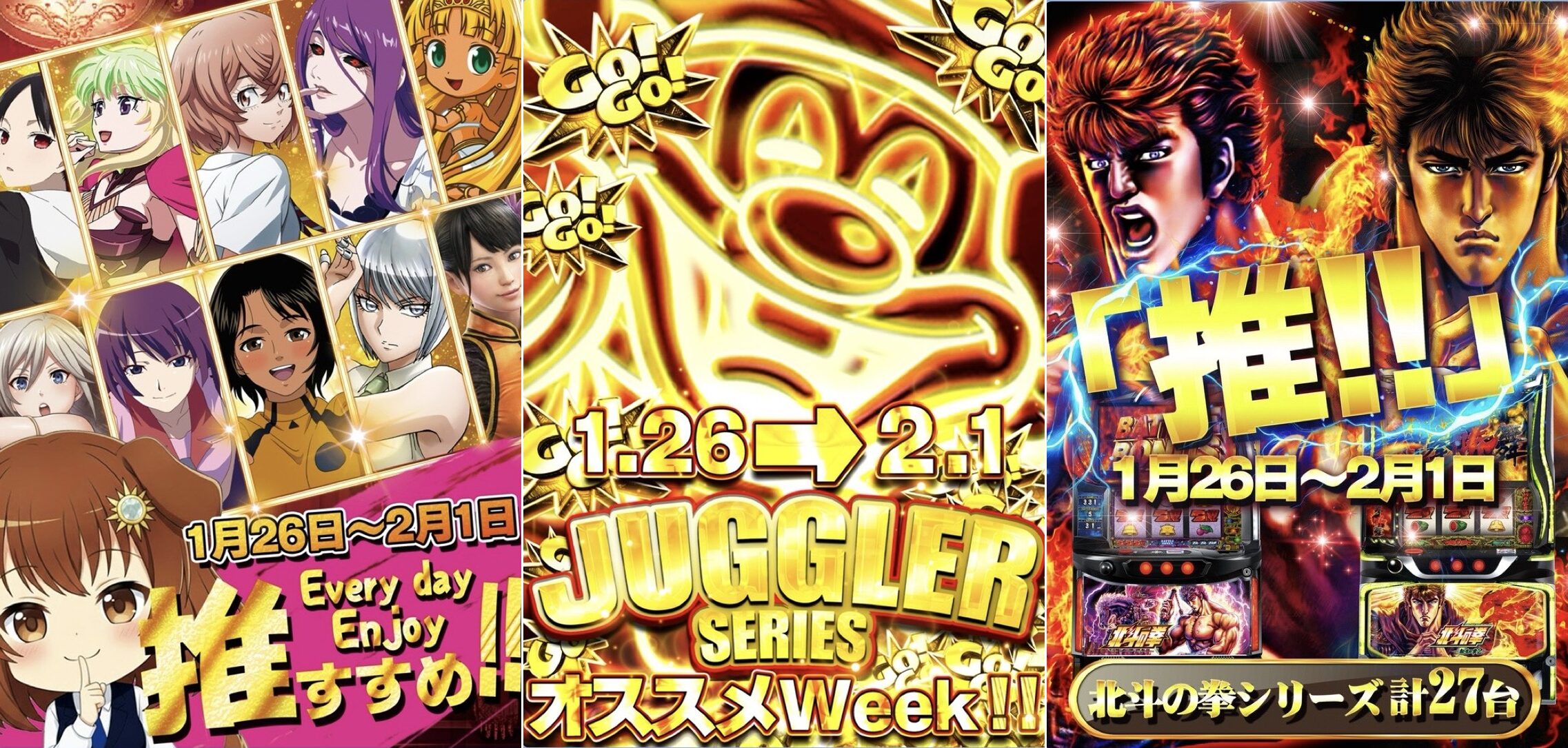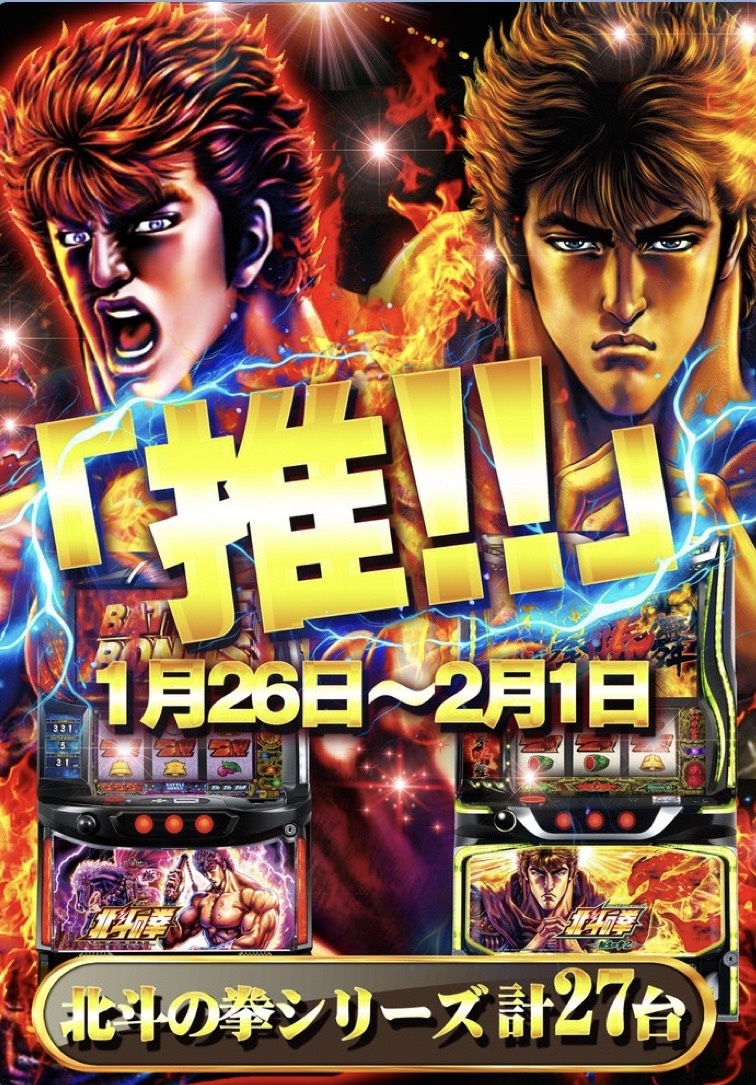 ちなみに1月の下旬からスタートしたオススメ機種は「2Fのメイン系、ジャグラーシリーズ、北斗の拳シリーズ」。