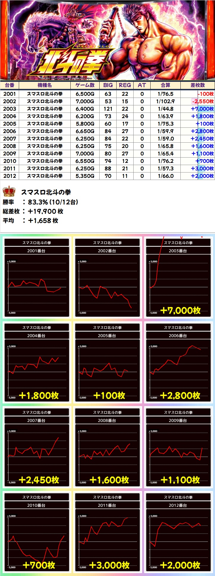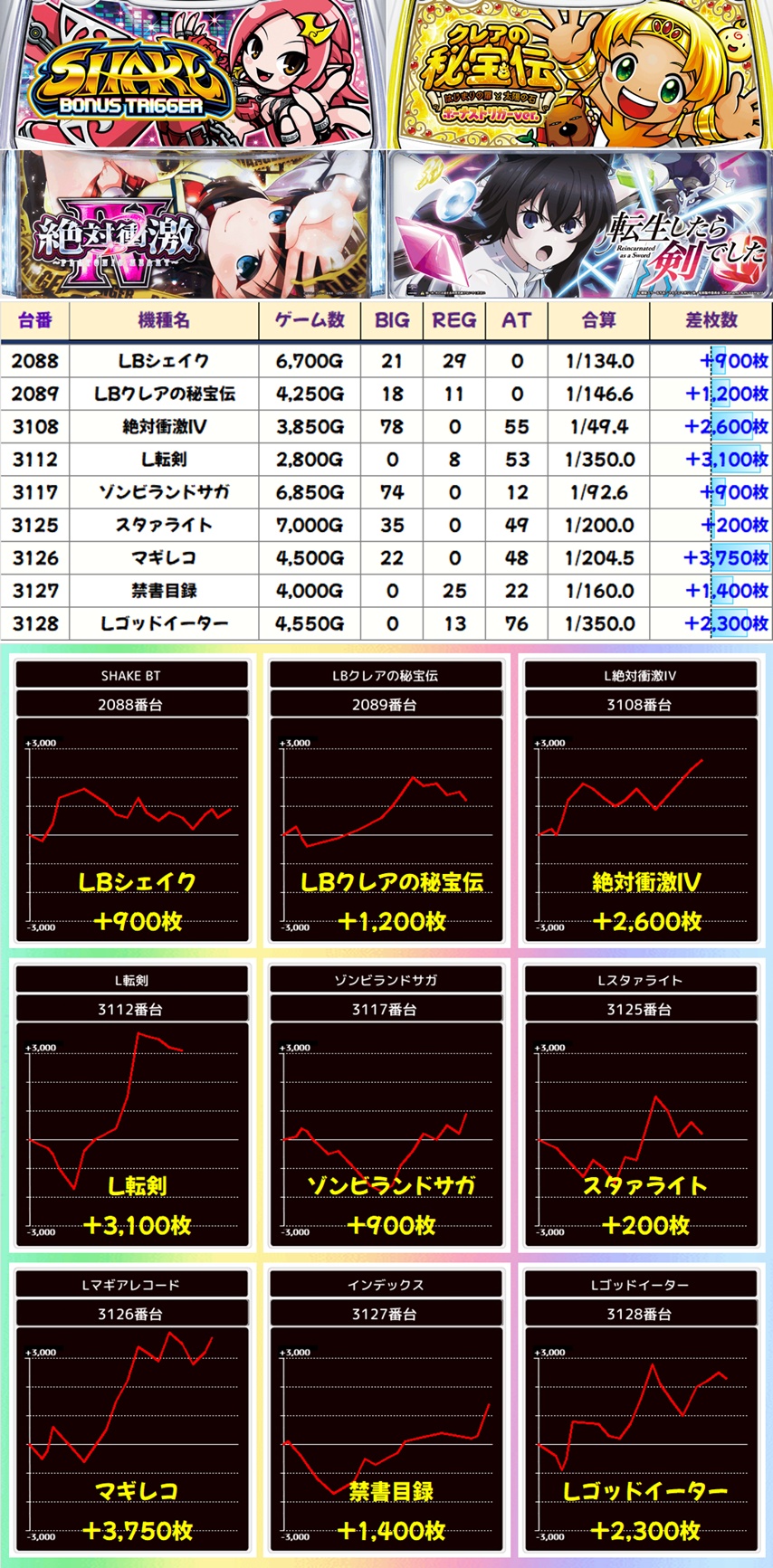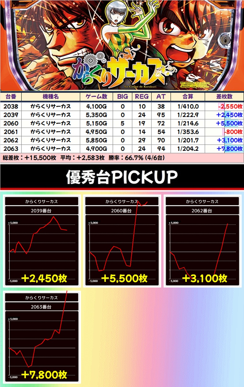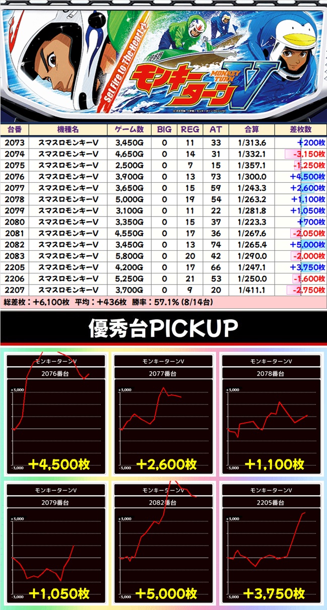 +7000枚を筆頭に12台中8台が+1000枚以上と素晴らしい結果に!