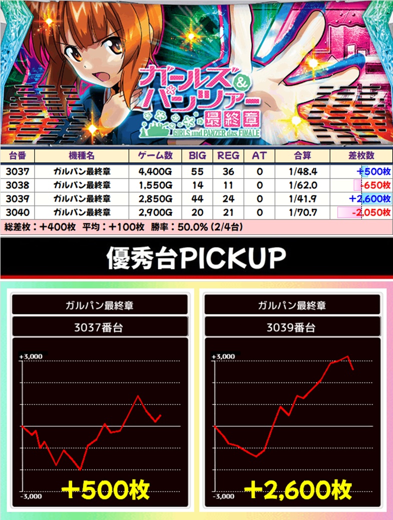 1/2系:ガルパン最終章(2/4台+)➡平均+100枚