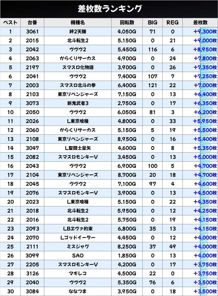 出玉ランキングTOP30