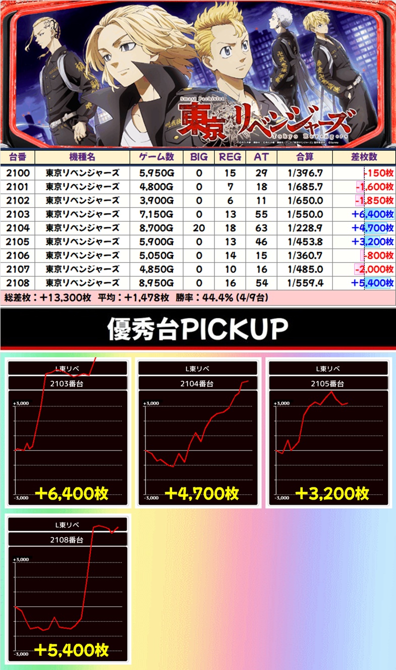 高配分:東京リベンジャーズ(4/9台+)➡平均+1,478枚
