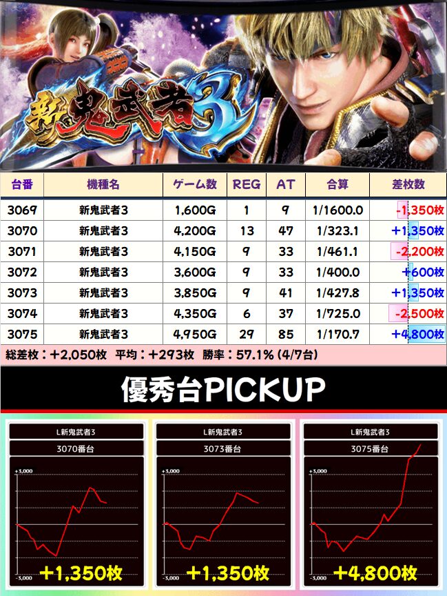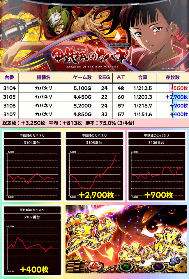 プラス差枚の2台は序盤から楽な展開になってますね。その出玉をしっかりプラス域でキープ。