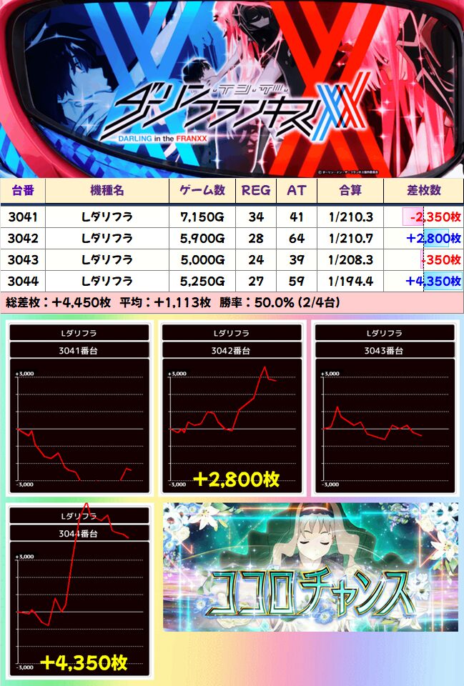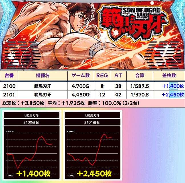 2台設置ながらどちらも中盤からチャンスを活かして伸ばす挙動に。
