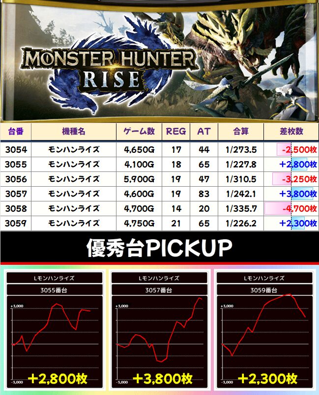 マイナスの台もREG回数はとれているとはいえ、通常時のハマリなどが響いた結果か?