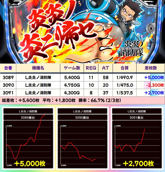 2作目が2Fで稼働中でも、初代のスマスロの方もまだ元気です。初当りもとれて炎炎激闘でもしっかり伸ばせてます。