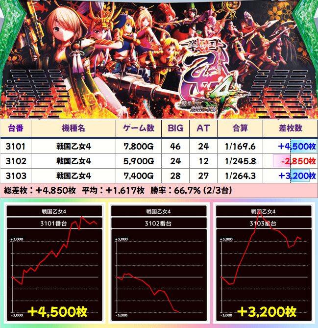 3101番台は一撃ではなく積み重ねなのでかなり優秀。直撃ATにも助けられている高設定じゃないとこの挙動はなかなかできません。