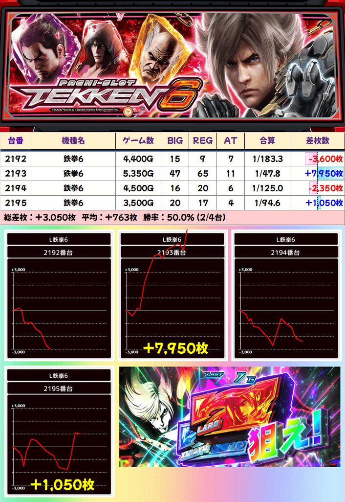 2193番台のが一度伸びが止まったものの、そこからすぐにまた一撃を決める展開に。伸びる台はとことん行くのが今回の鉄拳か。