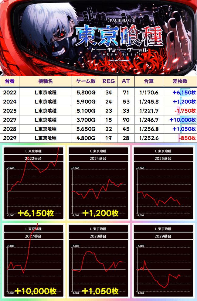 オススメ機種である東京喰種とモンキーVも高配分だったと思われる挙動の台が複数みてとれました!