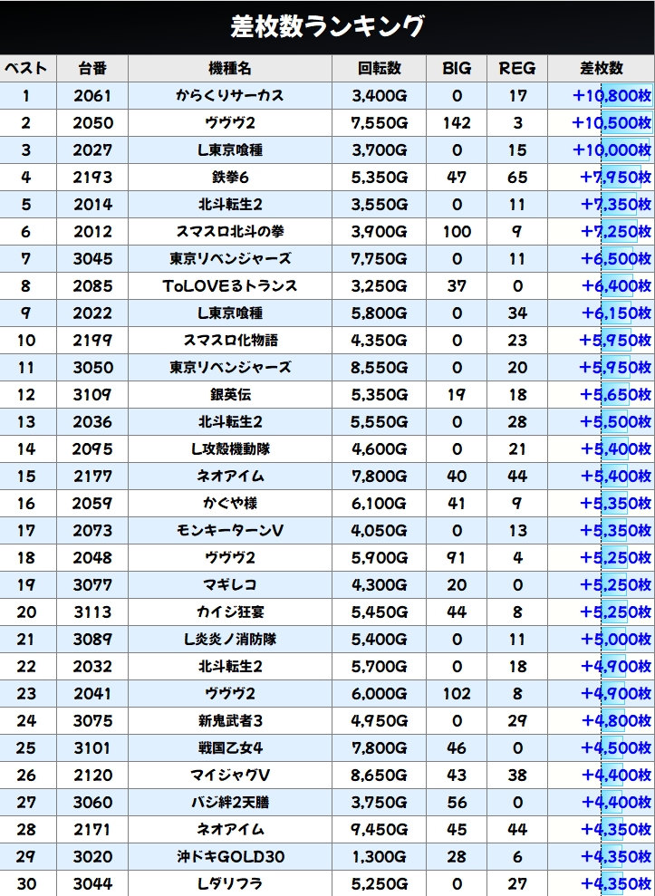 上に載せた優秀な台は初当りまでの間隔が短い=天破によく入ってあべしを貯められている台ではないでしょうか?