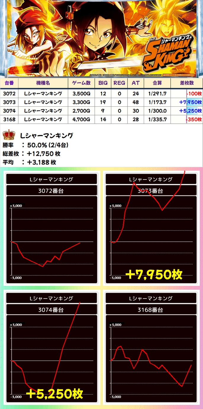 【全台系濃厚】Lシャーマンキング(2/4台+)→平均+3,188枚