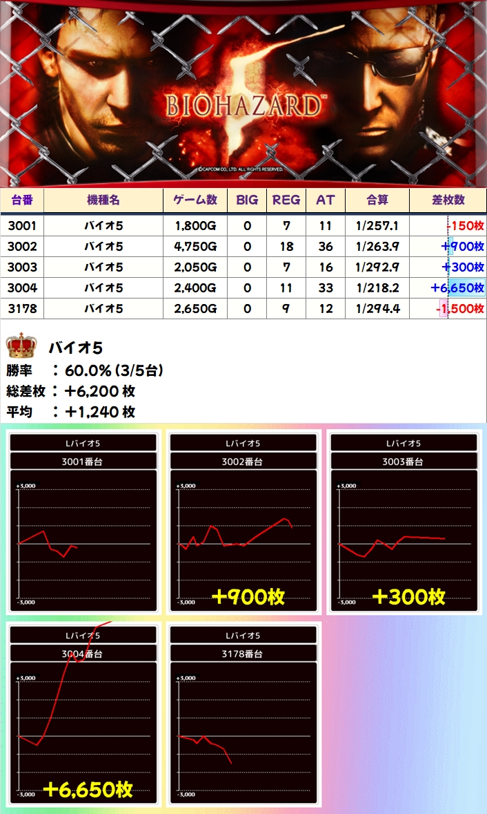 【1/2系濃厚】バイオ5(3/5台+)→平均+1,240枚