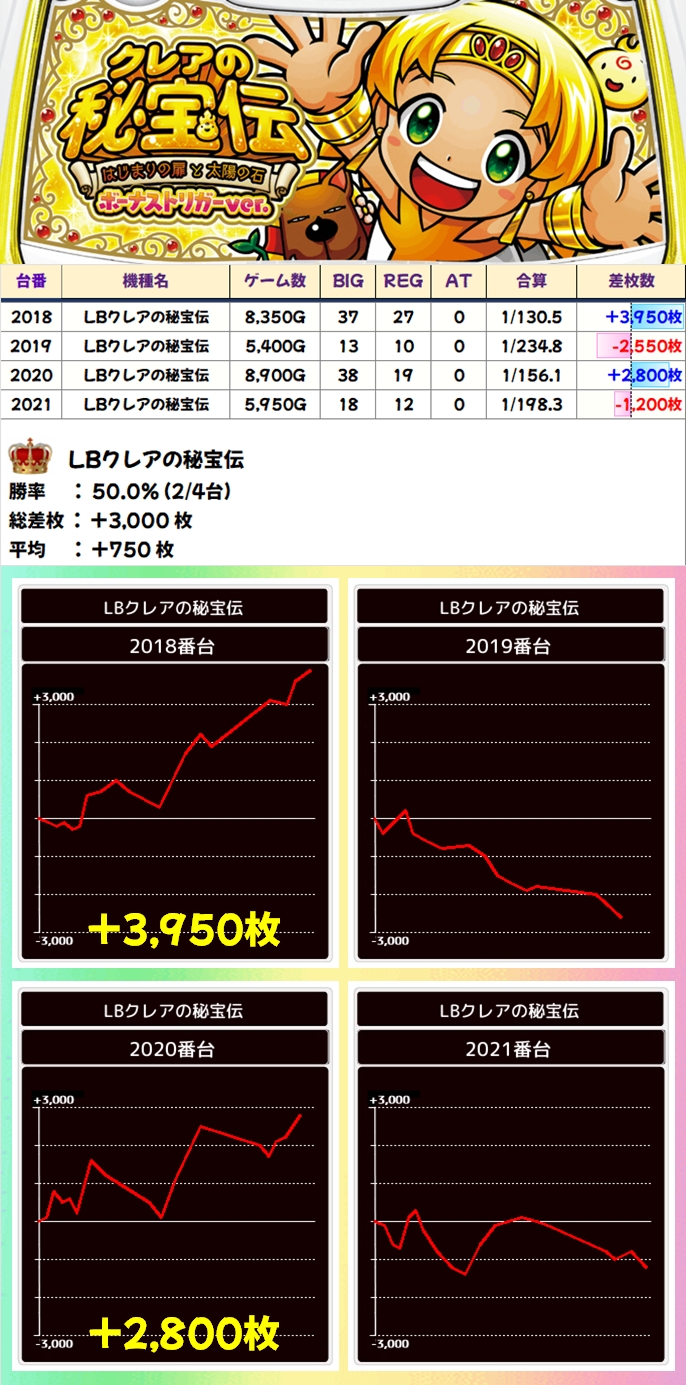 【1/2系濃厚】LBクレアの秘宝伝(2/4台+)→平均+750枚